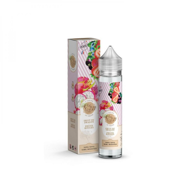 Le Fruit du Dragon & Fruits Rouges de la gamme Le Petit Verger par Savourea est un e-liquide de 50 ml qui marie l'exotisme du fruit du dragon à l'intensité des fruits rouges. Avec un ratio PG/VG de 50/50, il offre un équilibre parfait entre production de vapeur et restitution des saveurs. Conditionné dans un flacon de 70 ml rempli à 50 ml, il permet l'ajout de boosters de nicotine selon vos préférences.