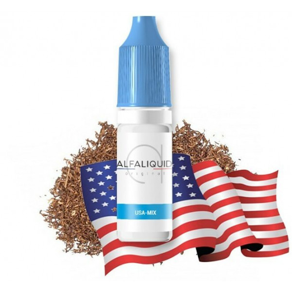 Le USA MIX 30VG d'Alfaliquid est un e-liquide au goût de tabac blond doux, légèrement fruité et sucré, offrant une expérience de vapotage authentique.